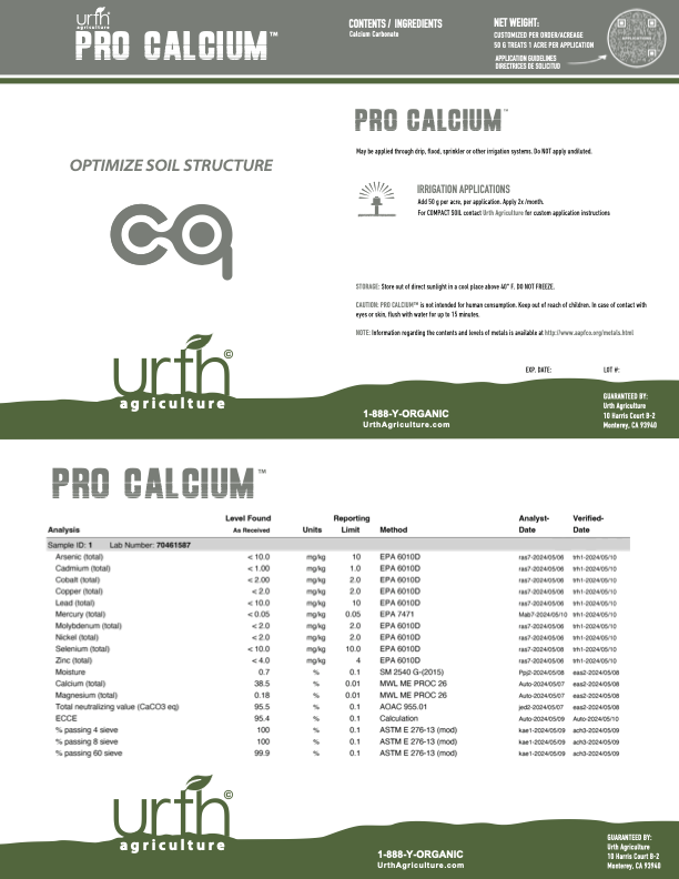 Whether it’s pistachios, avocados, artichokes or other crops with compaction issues, Pro Calcium - as part of the SOM PROTOCOL or the COMPACTION PROTOCOL - will help relax the ground to get water and nutrients down where it’s needed most.